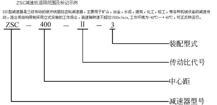ZSC減速機適用范圍 ZSC型減速器是三級傳動的漸開線圓柱齒輪減速器,主要用于礦山,冶金,水泥,建筑,化工,輕工,等各種機械設(shè)備的減速傳動,適合受結(jié)構(gòu)限制采用立式安裝的工作場合,高速軸轉(zhuǎn)速不超過1500r/min,工作環(huán)境為-40℃—+40℃,可正反轉(zhuǎn)運行。 ZSC(A)320~1000。 ZSC(A)型為立式套裝 式漸開線圓柱齒輪減速機。