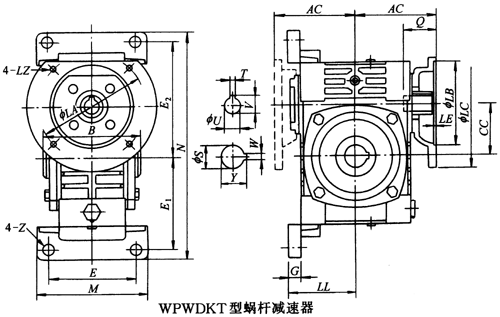 WPWDT40、WPWDT50、WPWDT60、WPWDT70、WPWDT80、WPWDT100、WPWDT120、WPWDT135、WPWDT155、WPWDT175、WPWDT200、WPWDT250、型蝸輪蝸桿減速器主要尺寸