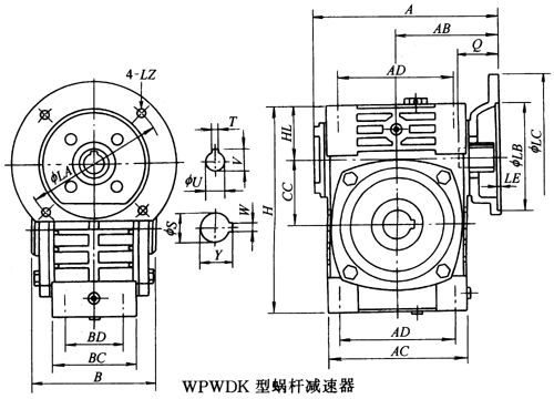 WPWDK40、WPWDK50、WPWDK60、WPWDK70、WPWDK80、WPWDK100、WPWDK120、WPWDK135、WPWDK155、WPWDK175、WPWDK200、WPWDK250、型蝸輪蝸桿減速器主要尺寸