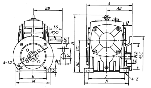 WPDA50、WPDA60、WPDA70、WPDA80、WPDA100、WPDA120、WPDA135、WPDA155、WPDA175、WPDA200、WPDA250、型蝸輪蝸桿減速器主要尺寸